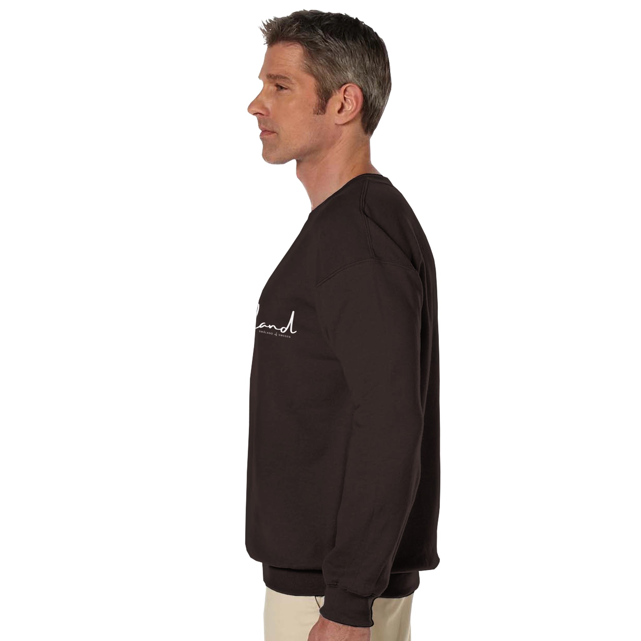Klassisk sweatshirt i unisex-modell med Småland tryckt på bröstet. Blandningen av 50% bomull och 50% polyester ger en mjuk och bekväm känsla. Rundhalsad med dubbelnålsömn vid axel, ärmhål, hals, midjeband och ärmslut.